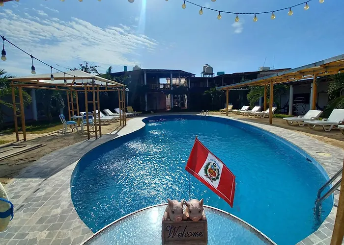Located a mere 10 minutes' stroll from Mancora Piura Peru Public Beach, the 2-star Mancora Y Sol Hotel offers modern comforts such as a bureau de change and a tour desk. Guests can swim in a swimming pool, while the hotel provides views of the garden.