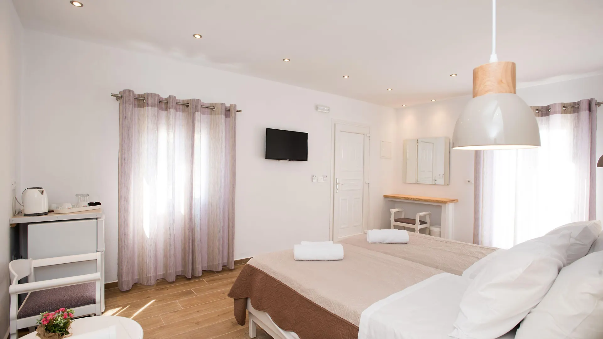 Het 3-sterrenhotel ligt op ongeveer 5 km van de luchthaven Mikonos en op ongeveer 30 minuten wandelafstand van culturele bezienswaardigheden zoals het Maritiem Museum van Mykonos. In Marina Blue Ornos bent u binnen 750 meter van Korfos.